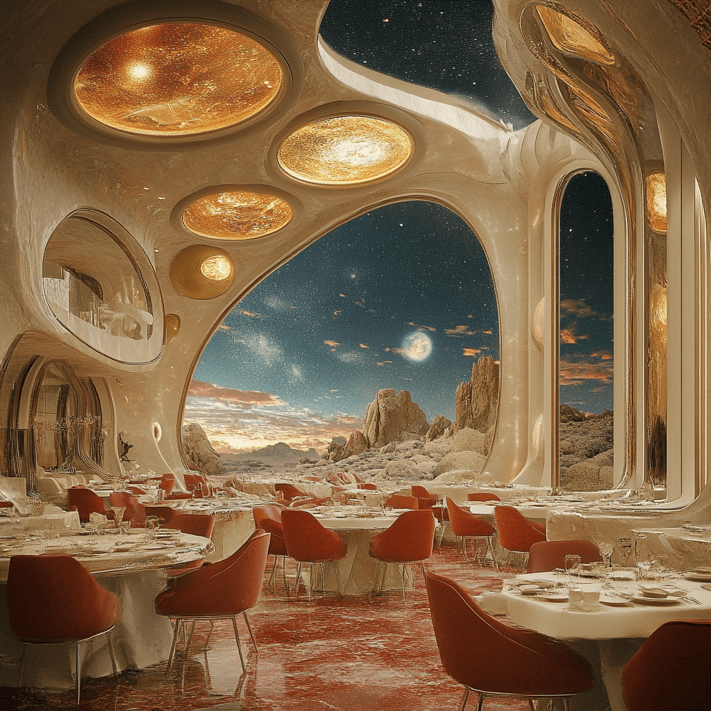 AI-generated images created using the AI program, Midjourney Bot, have shown Vegas in a new light – with restaurant interiors encapsulating a futuristic aesthetic. The high ceilings steer towards incorporating more curves, while we can’t see many differences with the tables and seats.