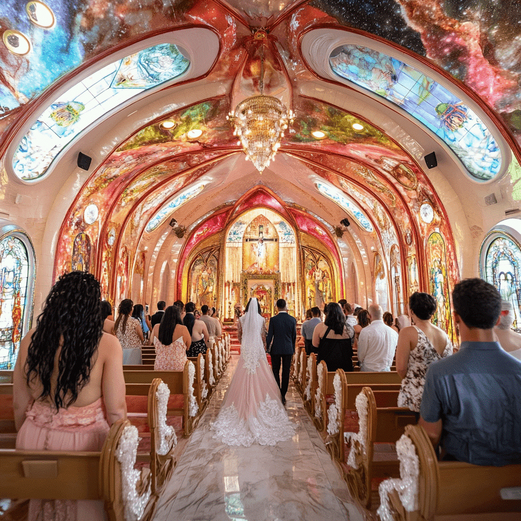 Vegas has many chapels to choose from if you’re wanting to get hitched. In the year 2044, we see a modern twist take place on a traditional chapel. The church interiors are full of colour, with stained glass windows still making an appearance. The altar, marble floor and church pews are still conventional, but the curves featured in the design along with plenty of light – give the buildings a more open and freeing feel.
